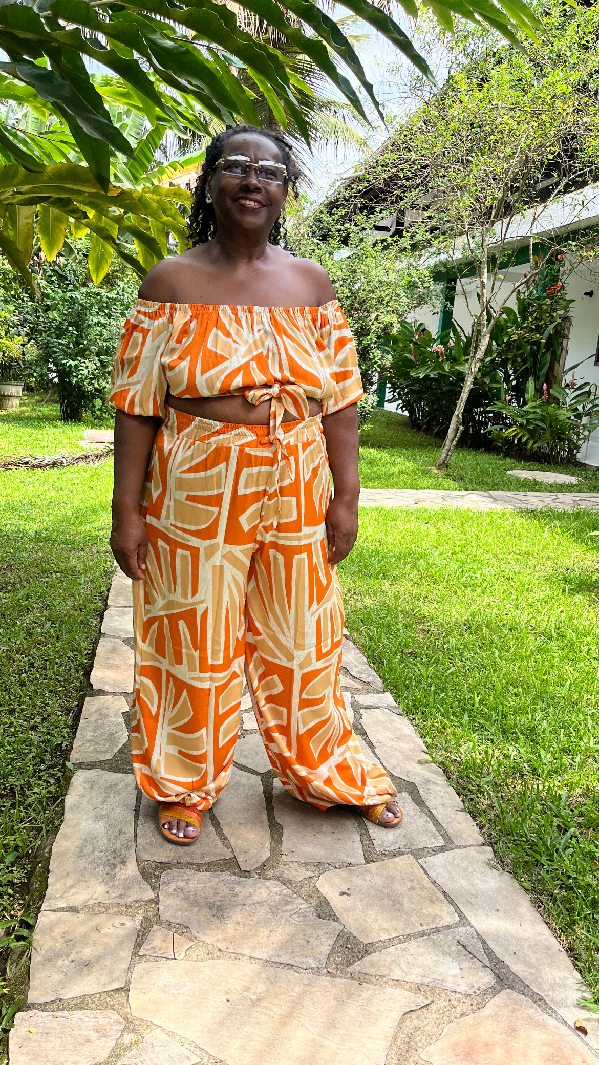 Conjunto Pantalona mais ciganinha fluída estampa marcante.