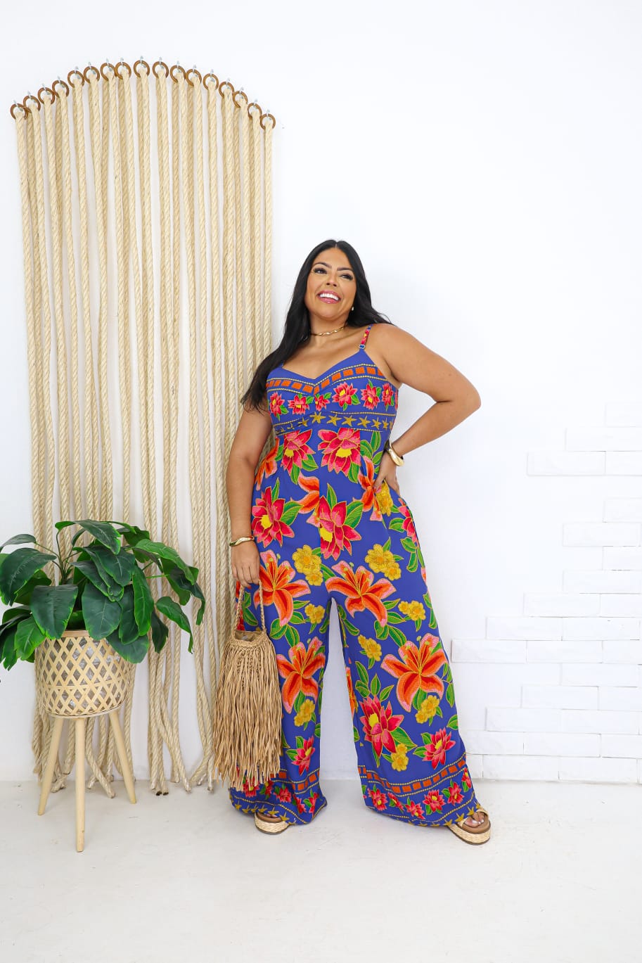 Macacão pantalona, inspiração farm nas estampas da estação.