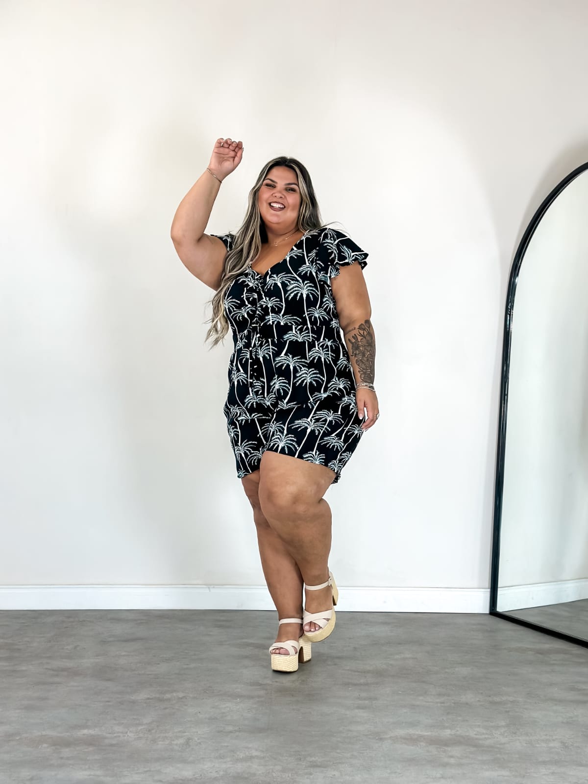 Macacão estampa praiana com fecho nas costas bem soltinho 100% viscose.